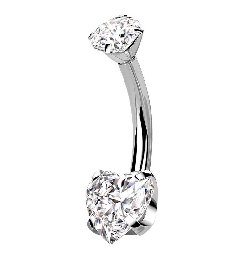 Heart cubic zirconia gem belly button ring! Sparkling belly button ring that would make a great addition to your collection. These are made from ASTM F-136 titanium and clear cz gems. Internally threaded and 14G. Choose your length: 3/8″ (10mm), 7/16″ (11mm). Gem size differs with length size. Sold individually.