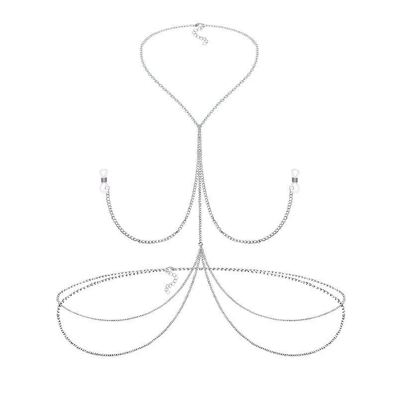 Fake Nipple Chain Barbell Body Piercing Nipplerings Metal Body Chain