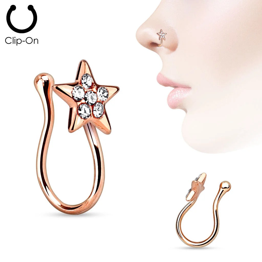 Get the sparkle without the commitment of a piercing with a fake nose ring! This cute rose gold gemmed star will let you accessorize anytime for any event!