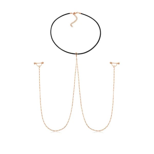 Nipple Chain Rosegold Clips On Nipple Rings Fake Faux Nipple Ring with Necklace Choker Chain Non-Piercing Nipple Jewelry